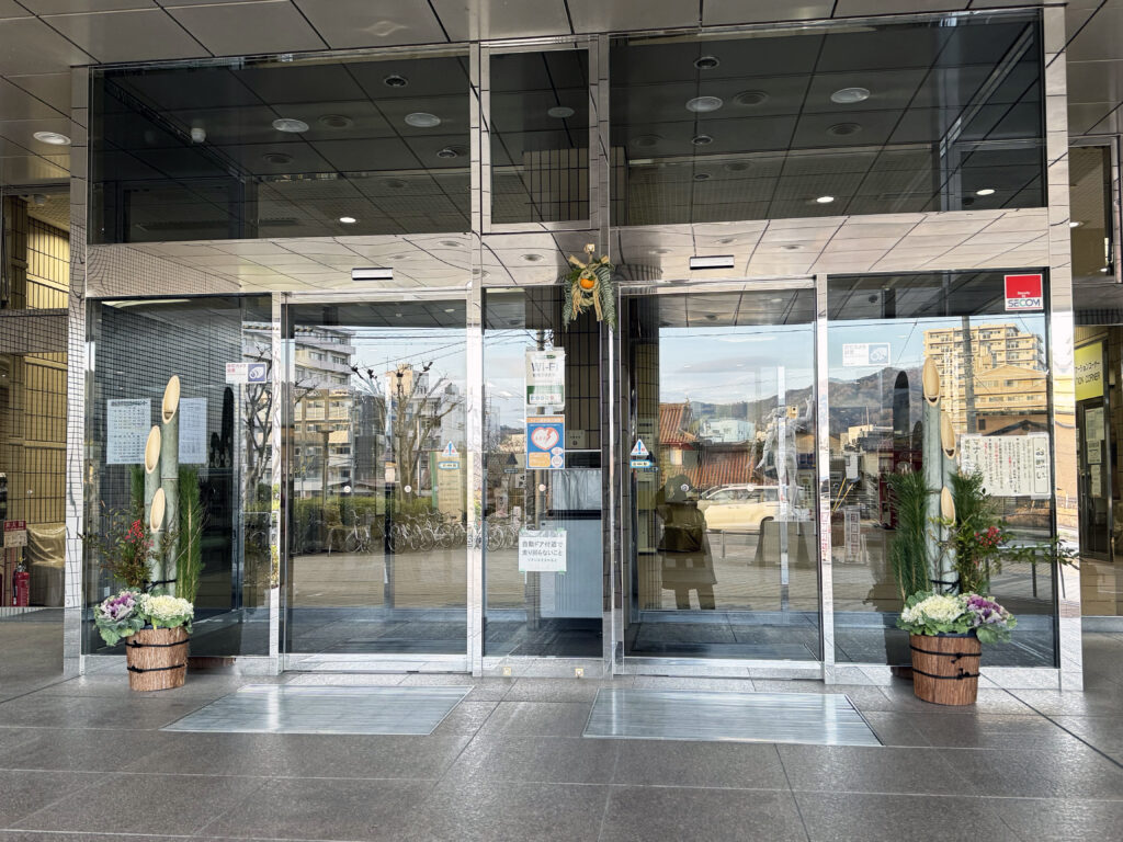 サンスクエア東広島の正面玄関にお正月飾りを飾りました